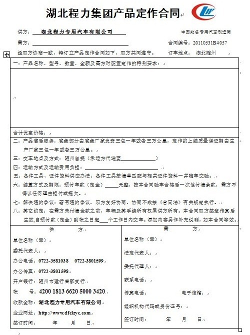 湖北程力專用汽車有限公司最新合同樣板,供客戶參考