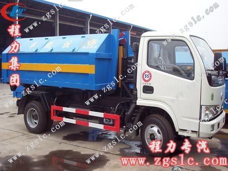 拉臂式垃圾車:拉臂垃圾車的特點是垃圾箱與車體分開,實現一車與多個垃圾箱的聯合使用,循環運輸。特別適用于短途運輸,如環衛部門對城鎮垃圾的清理、運輸等。