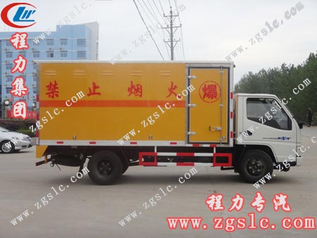 防爆車:稱謂民用爆破器材運輸車,具有廂體強度高、防火阻燃、防雨、防止靜電火花、煙火報警和防盜報警等功能。湖北程力專用汽車有限公司生產的防爆車具有國家資質,是國家發改委定點生產單位,該車的設計和結構完全符合國防科工委頒發的《爆破器材運輸車安全技術條件》要求。是一種安全可靠,十分理想的爆破器材運輸的專用車輛。